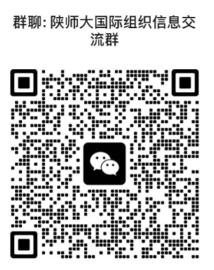 有意向选修全球治理课程或赴国际组织实习、任职的同学,请加入“陕师大国际组织信息交流群”(群内推送全球治理课程、讲座、国际组织实习、就业招聘信息、留基委相关项目等)。