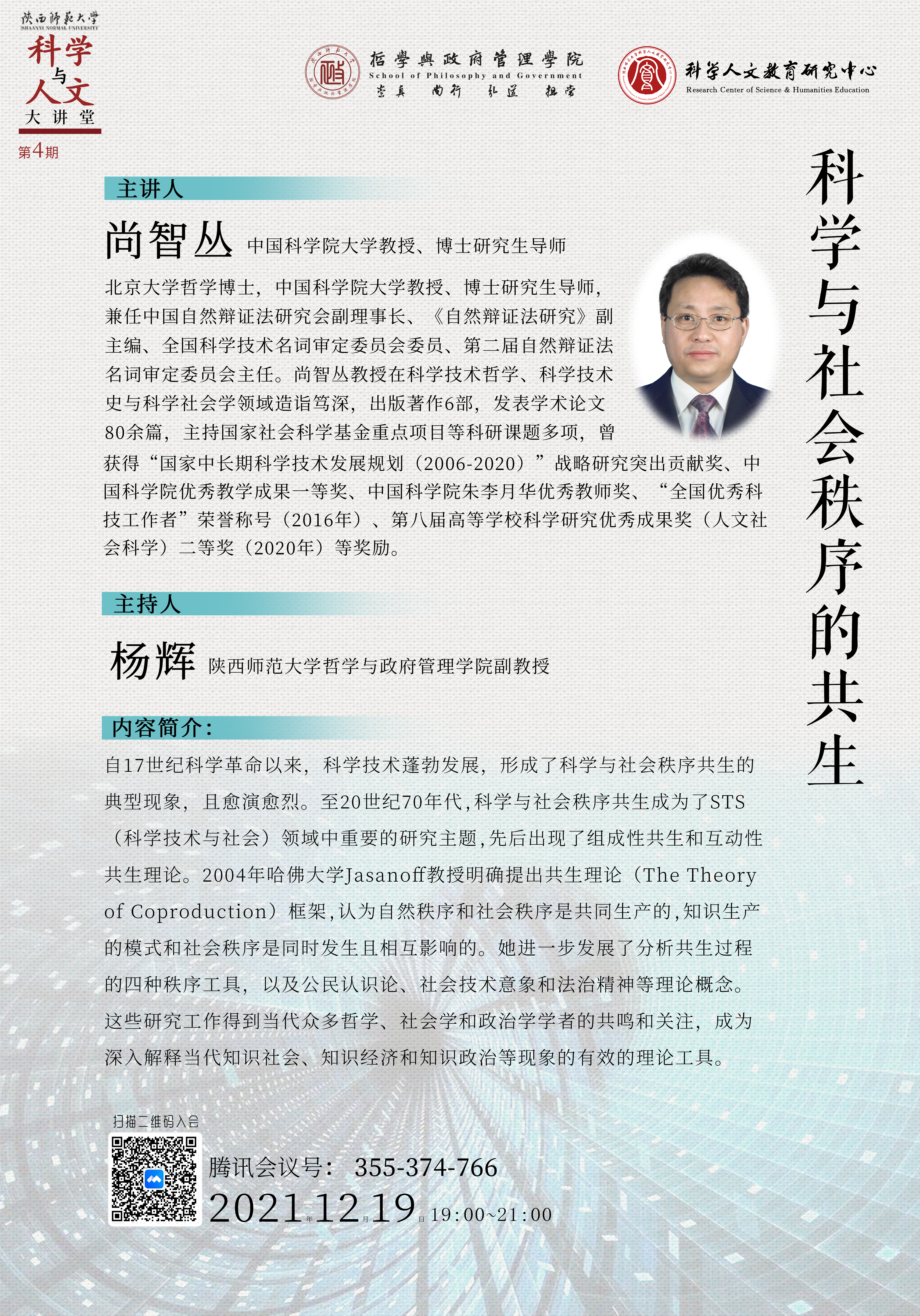 科学与人文大讲堂(第4期):科学与社会秩序的共生