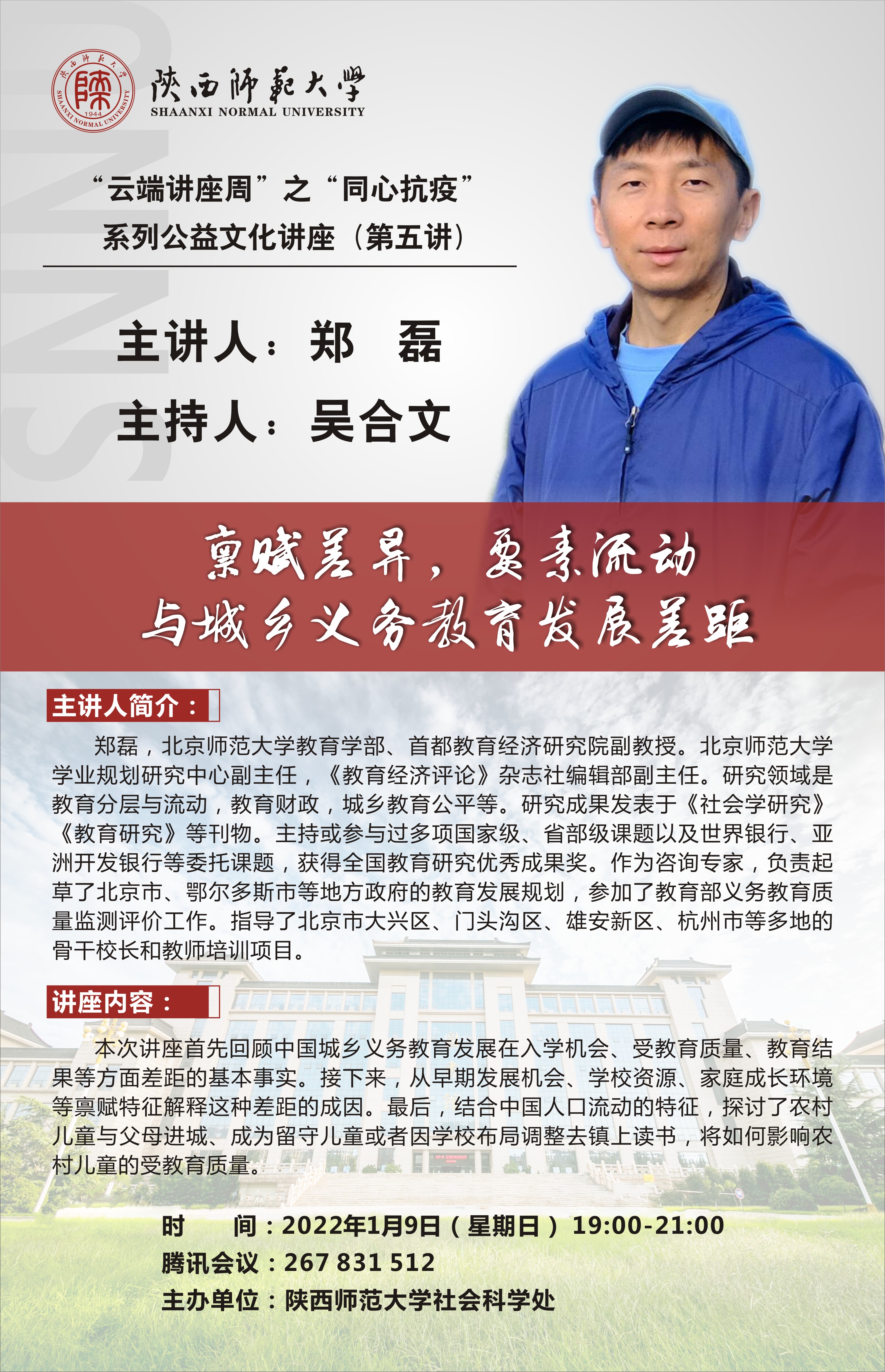 “云端讲座周”之“同心抗疫”系列公益文化讲座(第五讲):禀赋差异,要素流动与城乡义务教育发展差距