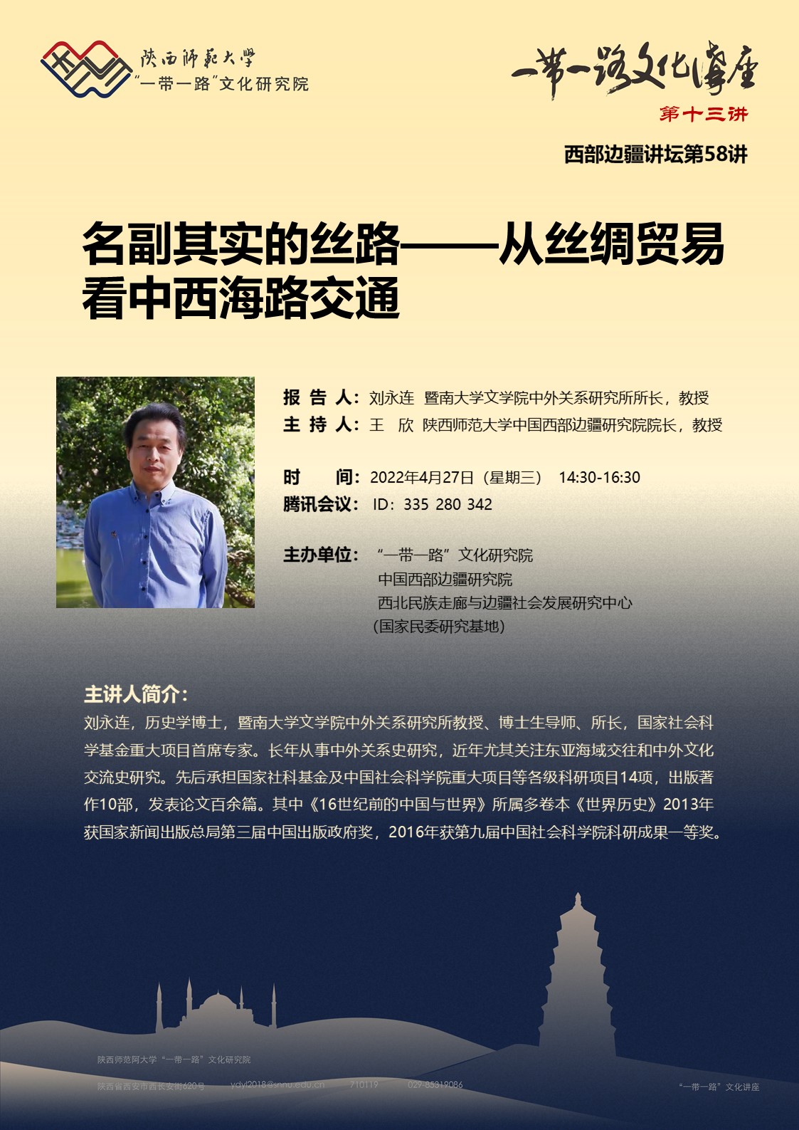 “一带一路”文化讲座(第十三讲)&西部边疆讲坛第58讲 名副其实的丝路——从丝绸贸易看中西海路交通