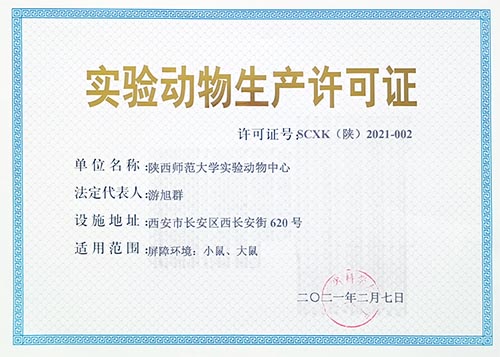近日,我校实验动物中心屏障设施获得了由陕西省科技厅核发的实验动物生产许可证和使用许可证。