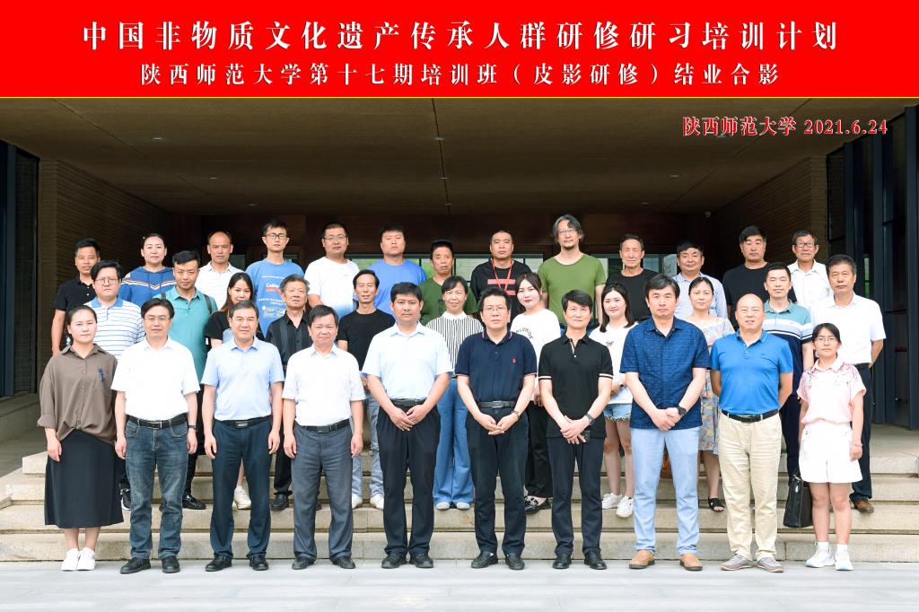 6月23日至24日,文化和旅游部、教育部、人力资源和社会保障部中国非物质文化遗产传承人群研修研习培训计划(以下简称“研培计划”)陕西师范大学第十七期培训班(皮影高级研修班)结业仪式暨皮影传习教学成果展演展览在长安校区举行。陕西省文化和旅游厅非物质文化遗产处处长刘卫东,我校副校长任晓伟,党委常委、宣传部部长马晓云等分别出席了结业仪式和展览展演活动。结业仪式由我校教育部中华优秀传统文化传承基地(陕西皮影)执行主任孙清潮主持。