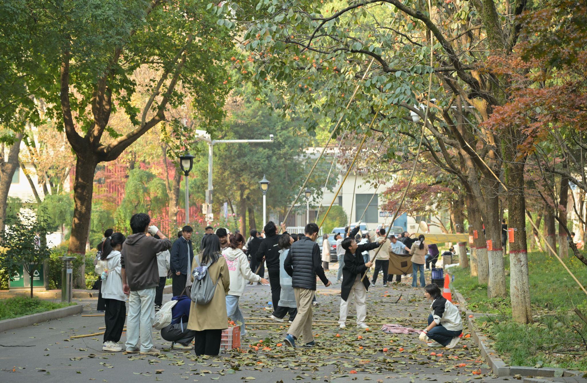 学校预先划定采摘区域,为同学们准备好竹竿、手套、柿筐等采摘工具。13支学生参赛队通过校史校情、劳动精神、中华优秀传统文化等知识竞答,为团队挑选柿树,抢占先机。采摘过程中,各参赛队伍团结协作、动作连贯、精准摘果,柿筐很快就堆满了红彤彤的柿果,共同描绘出一幅团结、和谐、喜悦的美好劳动画面。经最终评比,心理学院“百柿可乐队”荣获此次柿子采摘劳动教育实践活动称重总重量冠军,国际商学院 “柿如破竹队”在 “柿王争霸”环节勇夺“柿王”称号。