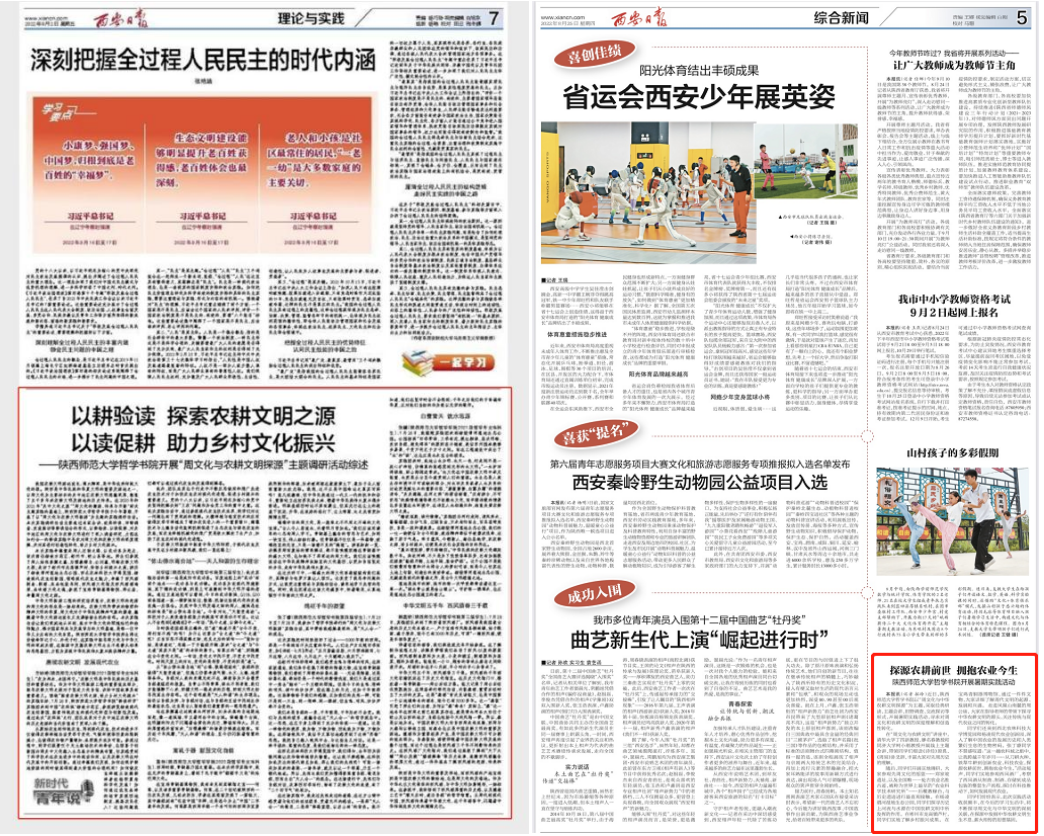 师大新闻网讯7月25日—28日,哲学书院2022年暑期社会实践骨干团队师生一行22人,以“周文化与中华农耕文明探源”为实践主题,先后前往杨凌、彬州、岐山等地开展调研活动。中国青年网、西安日报、西安新闻网等媒体对调研活动进行了报道。其中西安日报对书院8名学生的实践成果进行了集中展示。