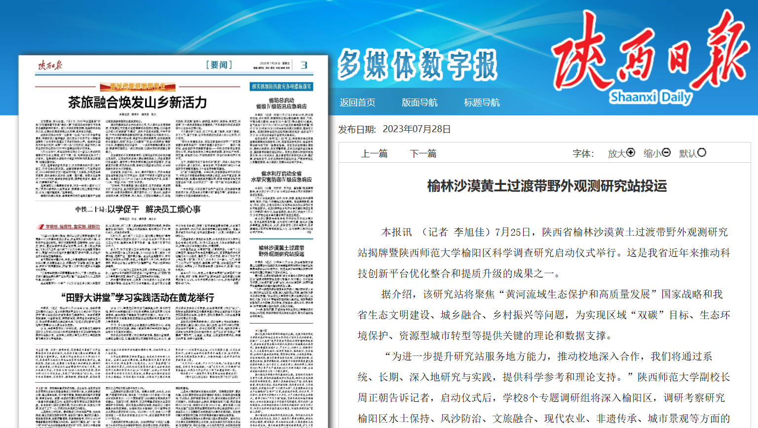 报道链接:榆林沙漠黄土过渡带野外观测研究站投运_陕西日报数字报-群众新闻网 (sxdaily.com.cn)