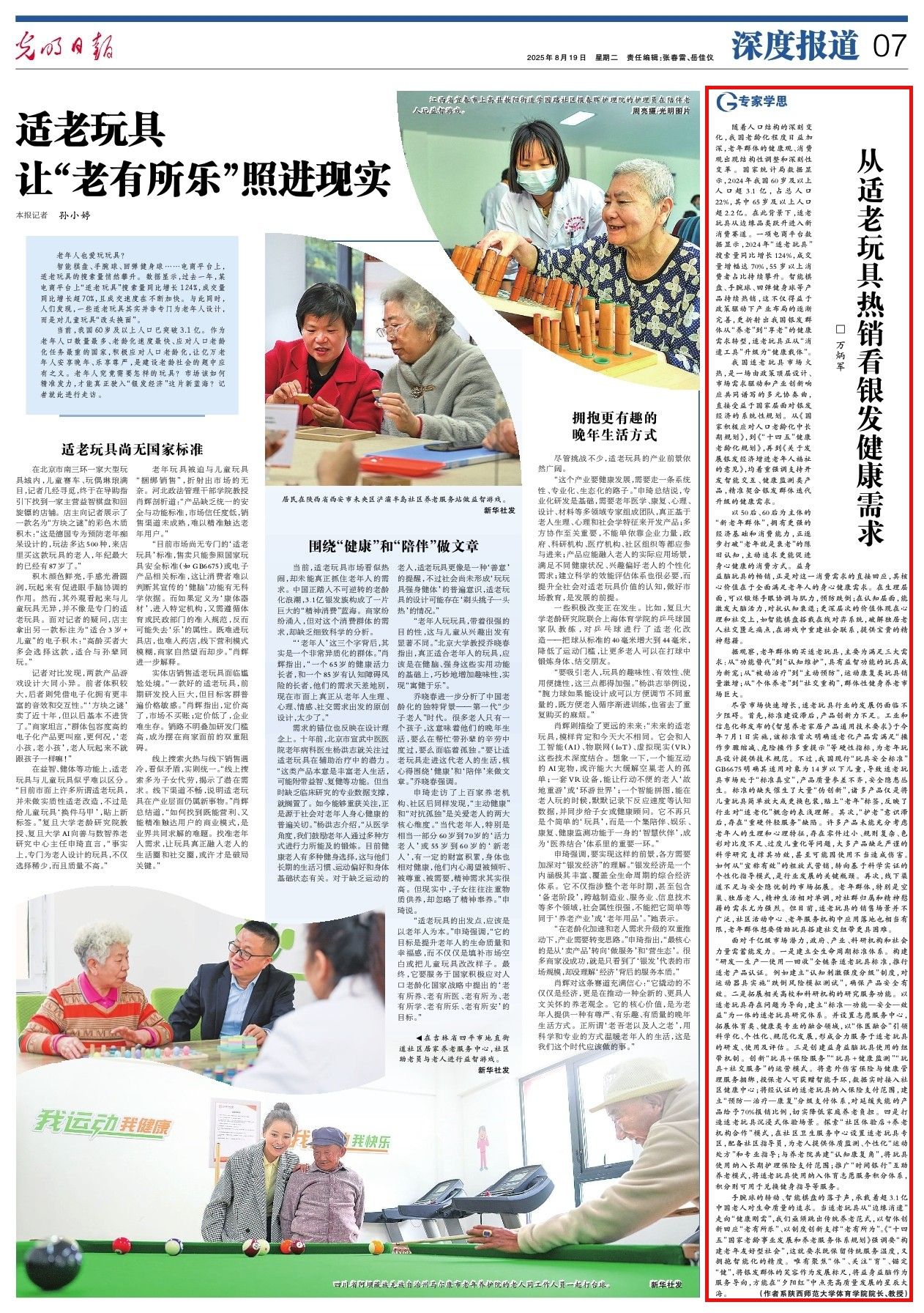 手腕球的转动、智能棋盘的落子声,承载着超3.1亿中国老人对生命质量的追求。当适老玩具从“边缘消遣”走向“健康刚需”,我们亟须跳出传统养老范式,以智体创新回应“老有所乐”、以制度创新支撑“老有所为”。《“十四五”国家老龄事业发展和养老服务体系规划》强调要“构建老年友好型社会”,这就要求既保留传统服务温度,又拥抱智能化的精度。唯有聚焦“体”、关注“育”、锚定“健”,将银发群体的笑容作为发展标尺,将益身益脑作为服务导向,方能在“夕阳红”中点亮高质量发展的星辰大海。