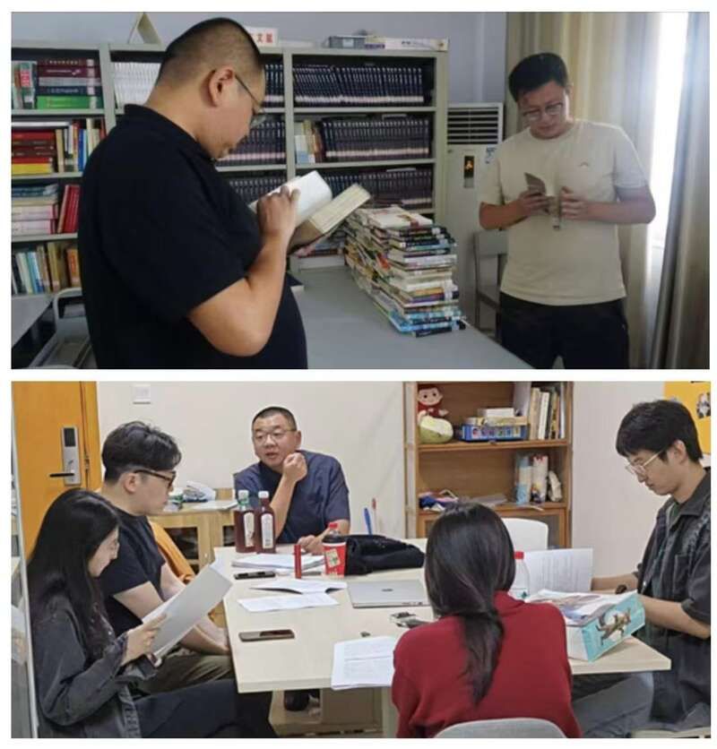 话剧《河山》演职人员研磨剧本。陕西师范大学/供图