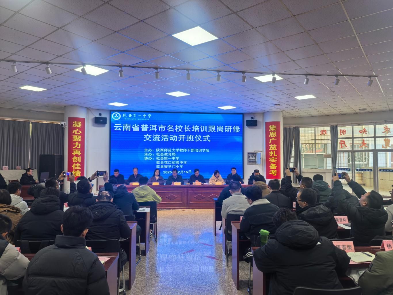 12月15日,跟岗研修阶段的启动仪式在乾县第一中学举办。仪式由乾县政府教育总督学董昱主持。乾县教育局党委书记、局长侯佼致欢迎辞,他希望以本次研修为契机,促进陕滇两地教育工作者深入交流、互学互鉴,共同为基础教育高质量发展贡献力量。陕西师范大学教师干部培训学院院长董喜林在讲话中强调,校长是学校发展的关键,跨省际的交流研修有助于拓展视野、激发思维,提升办学治校能力,期待参训校长们能在乾县收获真知、结下情谊。乾县第一中学校长张龙涛详细解读了跟岗研修方案,明确了研修目标、内容安排与学习要求,确保后续跟岗活动有序、有效开展。