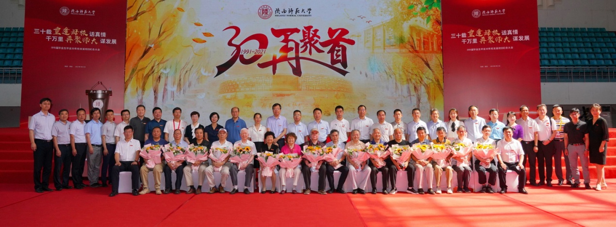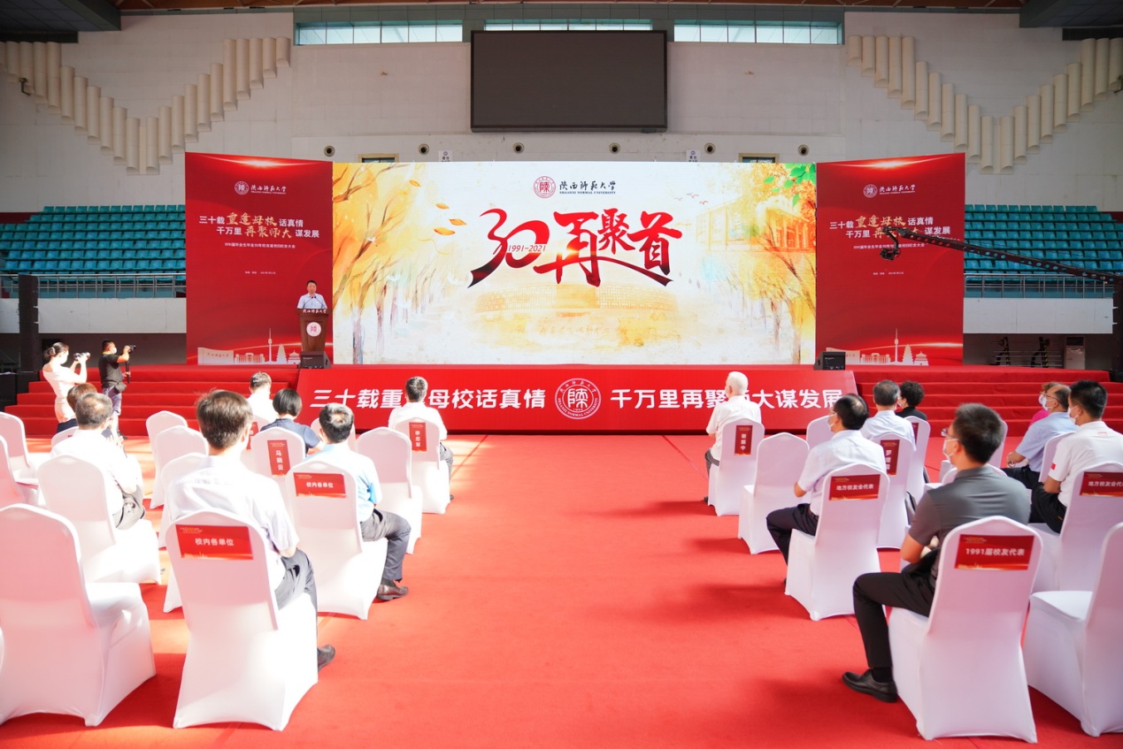 师大新闻网讯 三十载重逢母校话真情,千万里再聚师大谋发展。7月31日上午,我校1991届毕业生毕业30年校友返校日纪念大会在长安校区上林体育馆举行。1991届600余名校友从祖国各地返回母校参加大会。校党委书记李忠军,校长、党委副书记游旭群,党委副书记卢胜利、王永安,副校长杨祖培、党怀兴、李磊,党委常委马晓云、罗永辉、李贵安,原党委书记谢振中,原党委副书记武国玲,以及时任系领导、任课教师代表,各地校友会会长、秘书长、校友代表,各学院、相关职能部门负责人出席大会。纪念大会由卢胜利主持。