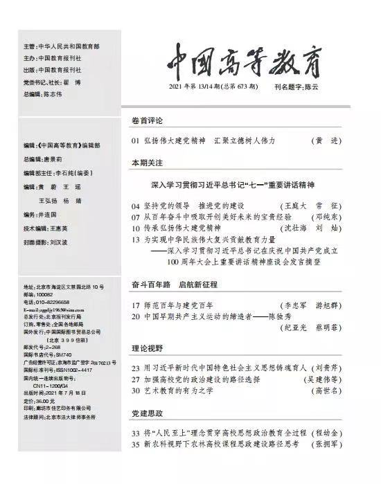 师大新闻网讯 近日,《中国高等教育》杂志2021年第13/14期刊发我校党委书记李忠军、校长游旭群共同署名文章《师范百年与建党百年》。文章阐释了师范教育的兴起为马克思主义在中国的传播和中国共产党创建所需思想条件和组织条件的形成作出重要贡献。表明在党的坚强领导下,中国师范教育不断得到革命性改造,始终服务伟大革命事业,担承构筑民族伟大复兴教育之基的重任,并在肩负迈向新时代建成教育强国新使命过程中走向新辉煌。