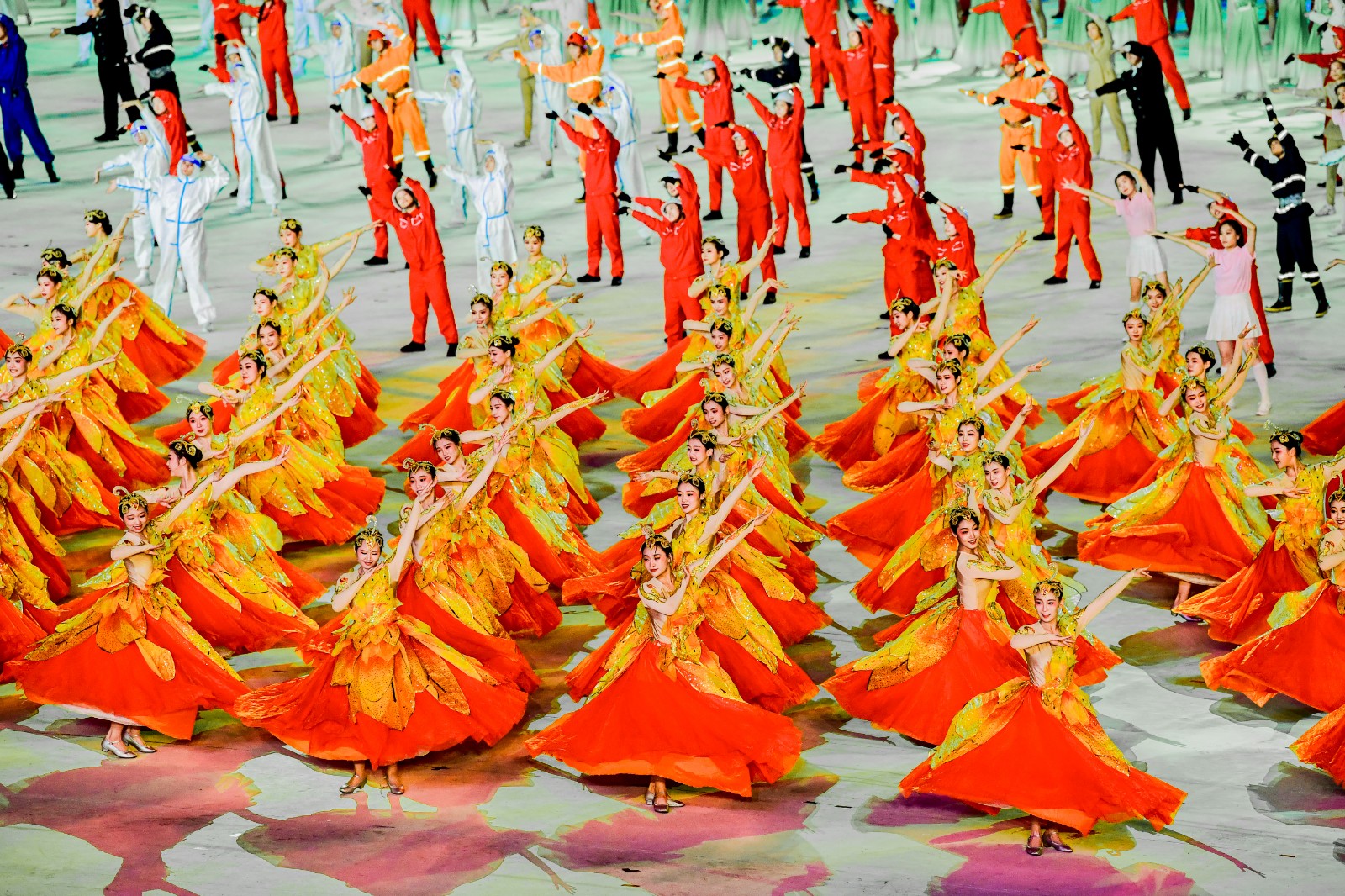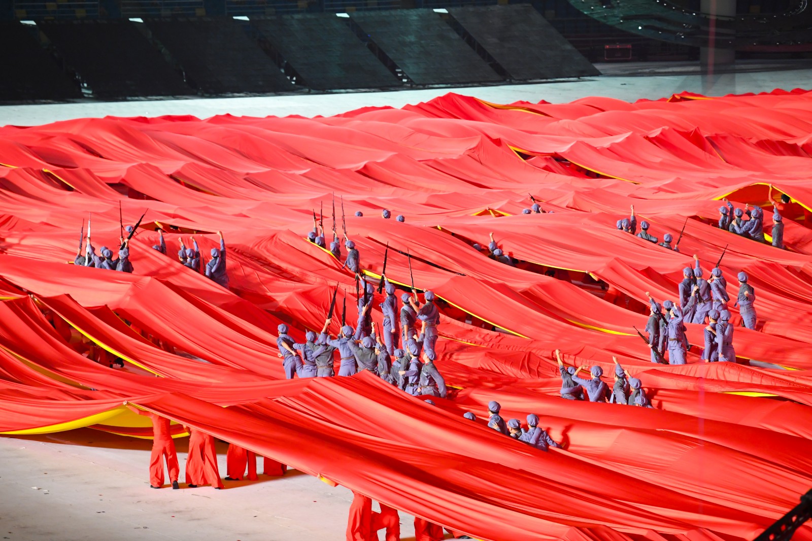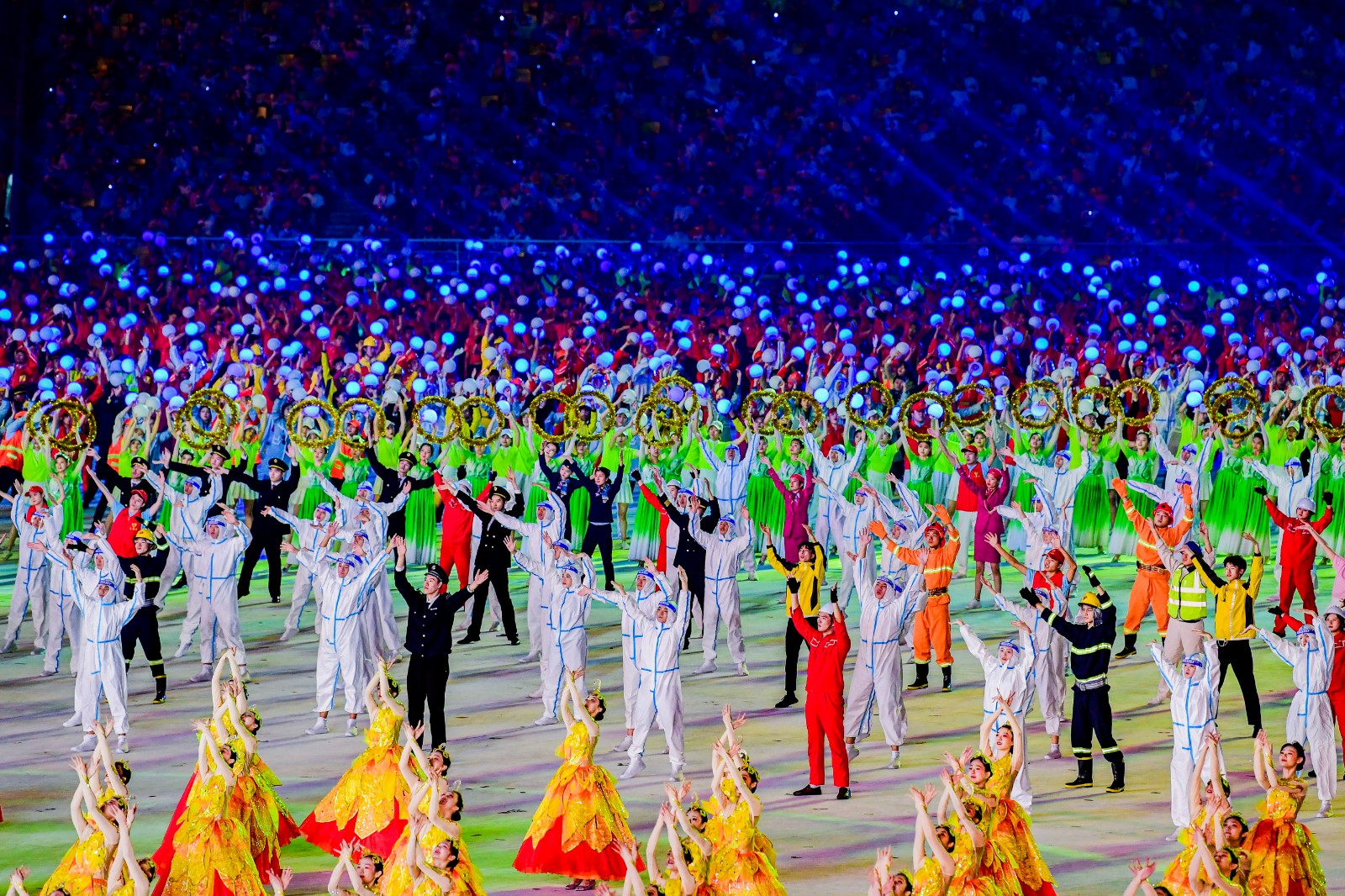 师大新闻网讯 9月15日晚,中华人民共和国第十四届运动会在西安奥体中心体育场隆重开幕。中共中央总书记、国家主席、中央军委主席习近平出席开幕式并宣布运动会开幕。在开幕式文体展演环节,我校学生参与序《迎宾鼓阵》和全部篇章的表演,为所有参演高校中学生群众演员分布最为广泛的高校。