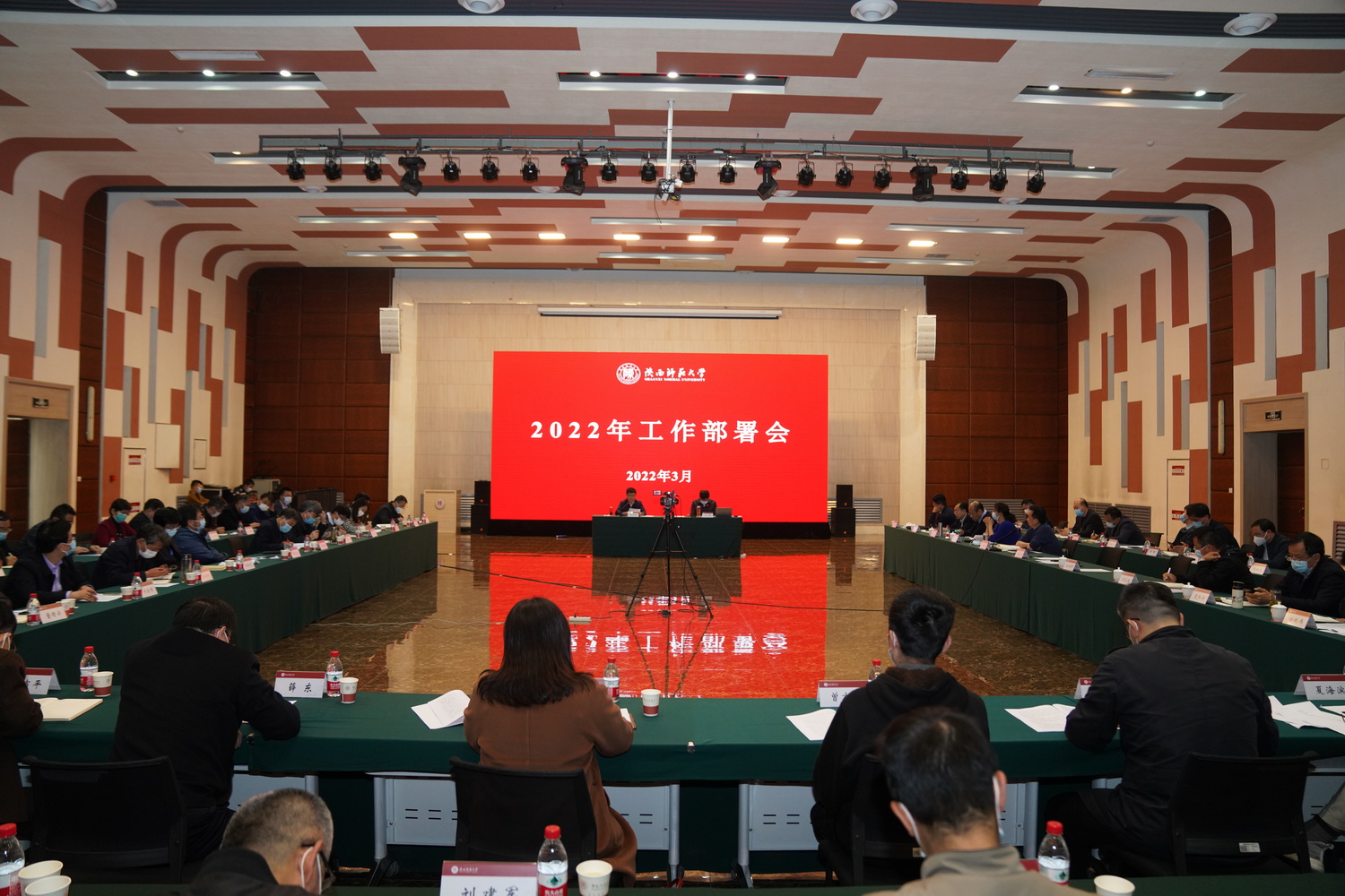 3月30日下午,我校2022年工作部署会在长安校区新勇学生活动中心多功能厅召开。校党委书记李忠军围绕扎实做好2022年度工作作了强调,校长游旭群回顾了2021年主要工作,分析了当前学校发展形势和工作思路,部署了2022年重点工作。会议由李忠军主持。