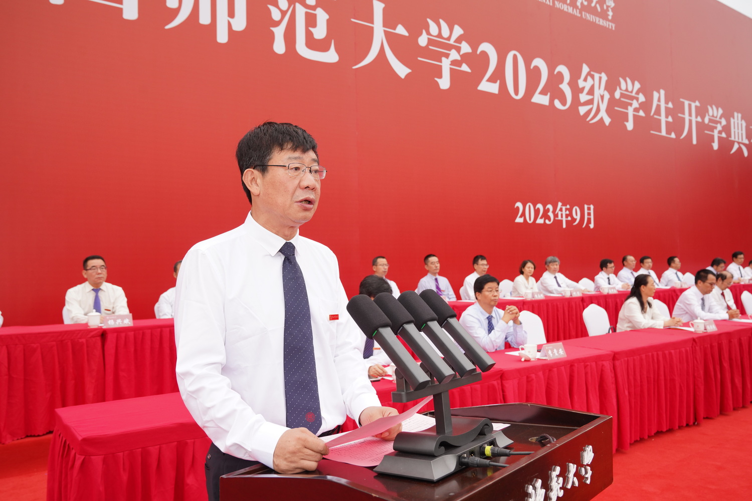 游旭群发表了题为“在推进强国建设、民族复兴伟业中绽放青春光彩”的讲话。他代表全校师生员工对2023级学生的到来表示热烈欢迎。随后,他介绍了学校厚重的历史底蕴、办学精神和发展前景。他说,伴随着救国、建国、兴国、强国的时代步伐,学校已经走过了79年的峥嵘岁月,绘就了绚丽的历史画卷,正朝着建设“中国特色、世界一流师范大学”阔步前行。学校特有的“西部红烛两代师表”精神的实质是爱国、奉献、坚守和奋斗,是对国家和民族教育事业的赤胆忠诚。
