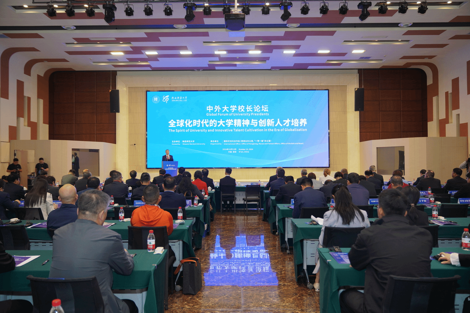 师大新闻网讯10月13日,在迎来建校80周年校庆之际,中外大学校长论坛在我校长安校区新勇学生活动中心举行。教育部国际合作与交流司副司长贾鹏线上致辞。中国教育国际交流协会秘书长杨军、陕西省委教育工委副书记王海波、我校党委书记李晓兵、校长游旭群出席开幕式。论坛由我校副校长董治宝主持。
