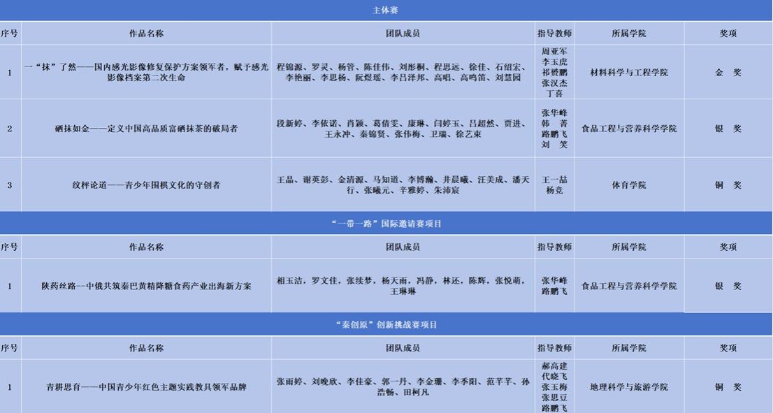 经过激烈角逐,我校在主体赛道获金奖1项、银奖1项、铜奖1项,在“一带一路”国际邀请赛道获得银奖1项,在“秦创原”创新挑战赛道获得铜奖1项,取得我校在中国大学生创业计划竞赛上的历史最好成绩,实现获奖数量和获奖等次的历史性突破。