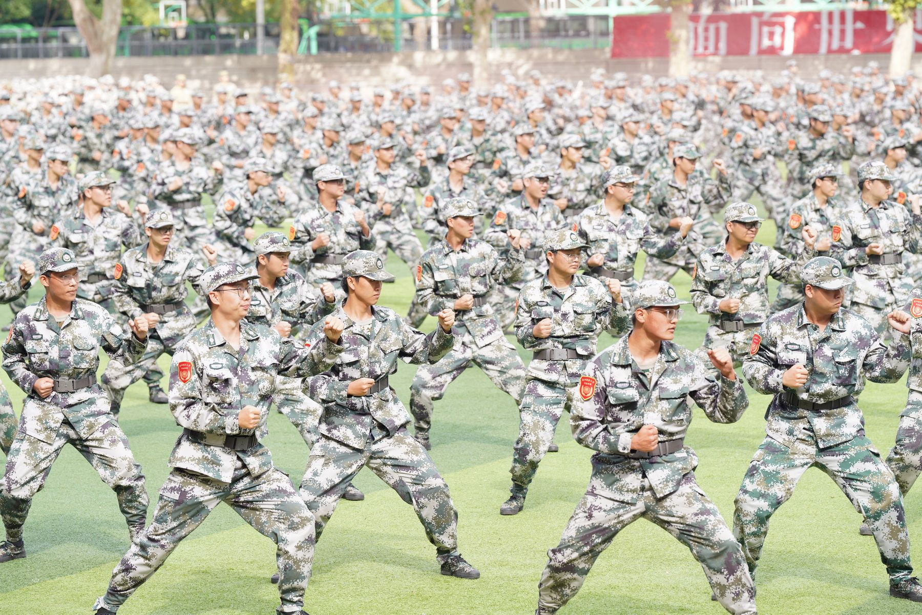会上宣读了《陕西师范大学2025级学生军训表彰决定》,对军训中涌现出的先进集体和优秀个人进行了表彰。参训学生进行了分列式、警棍术、军体拳、擒敌拳、战术和团体操等军事科目汇报表演,全面展现了军训以来的训练成果,彰显了师大学子昂扬向上的精神风貌。
