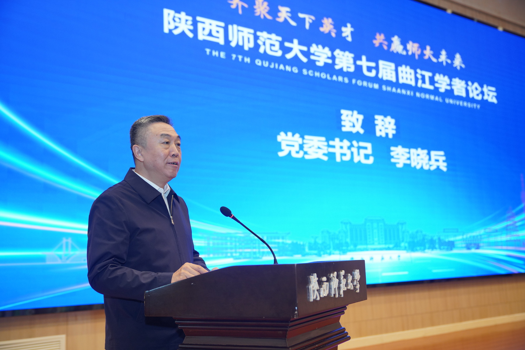 师大新闻网讯9月19日至21日,我校第七届“曲江学者论坛”在长安校区举办。校党委书记李晓兵、陕西省委组织部人才工作一处处长钟雪斐出席论坛开幕式并致辞。校党委副书记罗永辉作主题报告。副校长陈新兵主持开幕式。主论坛以线上线下相结合的方式进行。