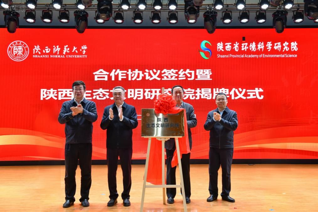 会上,陈新兵与魏新军代表双方签署协议。李晓兵、游旭群、刘志生、魏新军共同为陕西生态文明研究院揭牌。