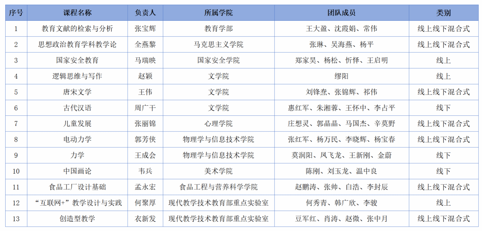 师大新闻网讯近日,教育部正式公布第三批国家级一流本科课程认定结果,我校13门课程成功入选,涵盖线上课程3门、线下课程3门、线上线下混合式课程7门。至此,我校已累计获评国家级一流本科课程63门,总数位列陕西省高校第三,在全国部属师范大学中位居第五。
