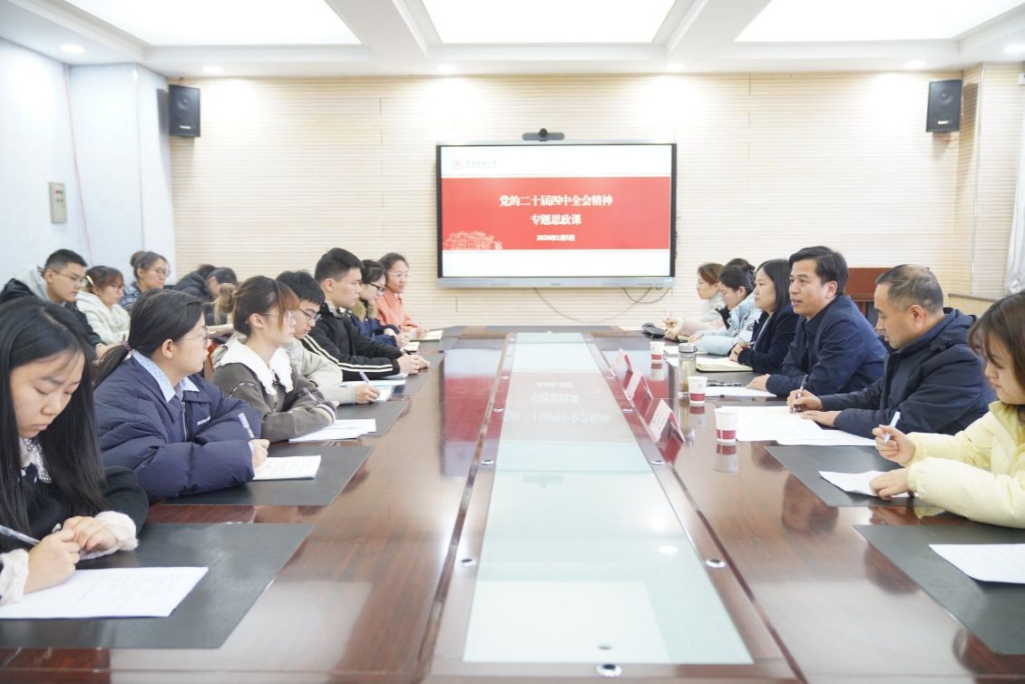 陈新兵围绕中国式现代化、教育强国建设、学校发展使命、学科专业布局与青年成长路径等方面,系统阐述了党的二十届四中全会精神的深刻内涵与实践要求。他讲到,坚持和加强党对教育工作的全面领导是办好教育的根本保证,是新时代教育事业取得历史性成就的宝贵经验,是进一步办好人民满意的教育的关键所在,是引领新时代中国特色社会主义教育事业发展的“定海神针”。他勉励同学们要胸怀“国之大者”,立足专业特色,在服务国家战略需求中实现个人价值,努力成长为有理想、敢担当、能吃苦、肯奋斗的新时代好青年。