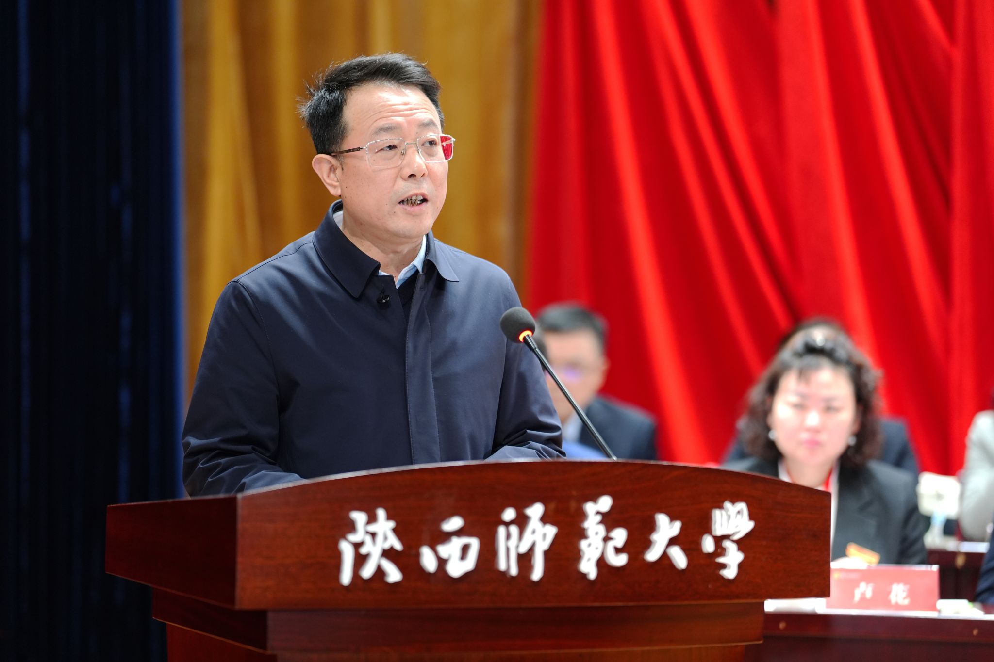 陈新兵表示,过去六年多,全校师生员工始终坚持以习近平新时代中国特色社会主义思想为指导,全面贯彻“面向世界、胸怀国家、心系人民、扎根西部、服务陕西”发展理念,在政治引领、立德树人、教师教育、深化改革等八个方面取得了显著成绩。他指出,我们必须主动适应深刻变革形势,从中国式现代化对教育强国建设的重要部署来看,回答好“何以报国”;从科技革命与产业变革浪潮来看,回答好“何以育才”;从“学龄人口梯次达峰”对教师规模结构质量提出的全新要求来看,回答好“何以强师”;从陕西建设发展之需来看,回答好“何以兴陕”。我们要发挥优势,厚植发展底气,直面瓶颈,锚定发展重点,在人才培养、学科建设、科学研究、队伍建设、治理效能、数智赋能等领域花大力气、下苦功夫。