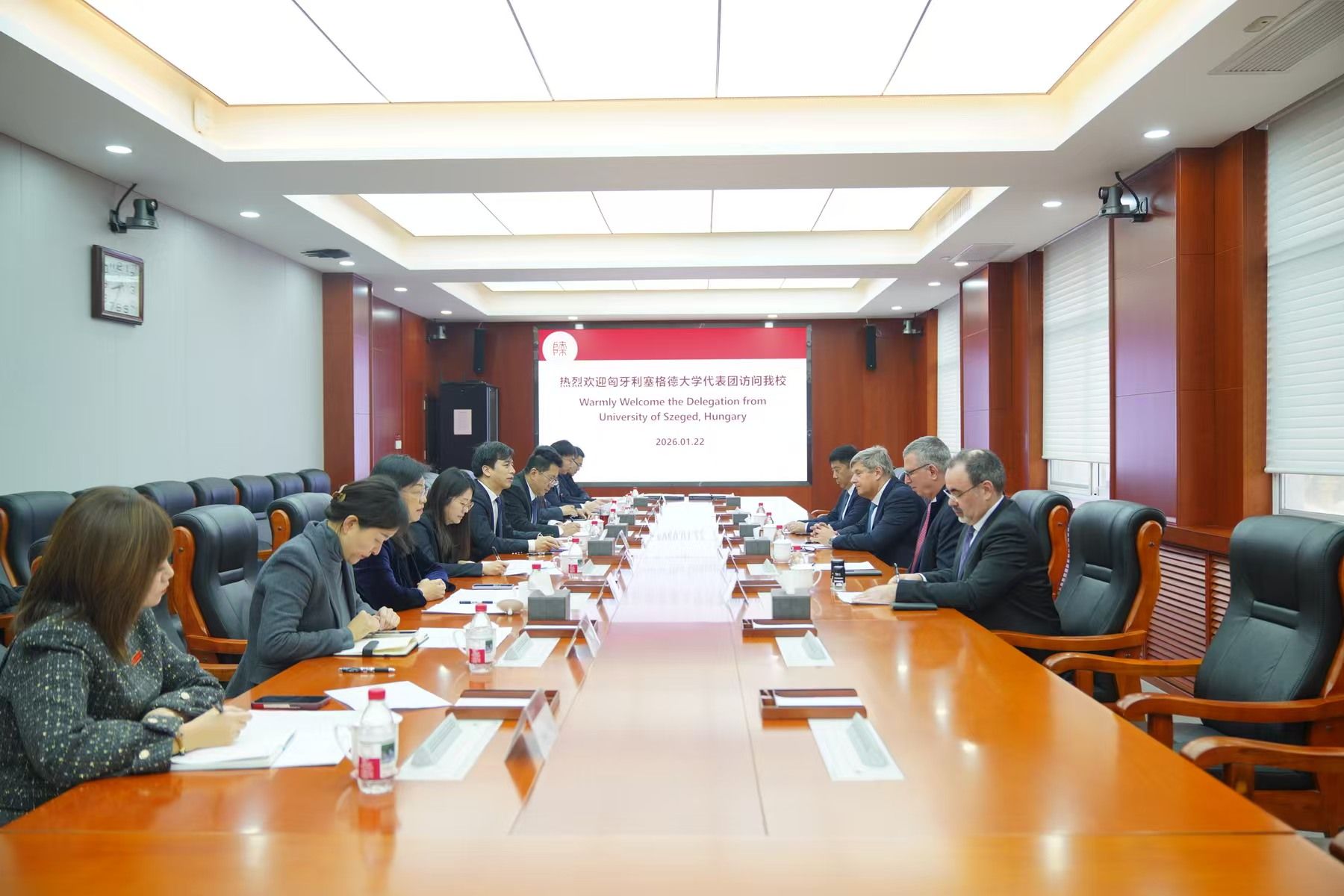 师大新闻网讯1月22日,匈牙利塞格德大学校长拉斯洛·罗沃、副校长扎卡·彼得等一行访问我校。校长陈新兵,副校长任晓伟,党委常委、物理学与信息技术学院院长李贵安等会见外宾,双方围绕共建中外合作办学机构,深化师生交流、科研协作及国际中文教育等议题进行座谈交流,并达成共识。座谈会由任晓伟主持。国际交流与合作处、物理学与信息技术学院相关负责人参加座谈。