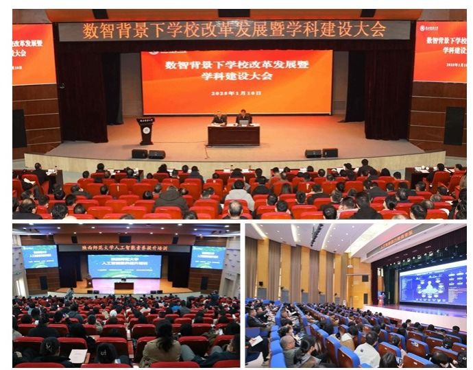 学校将2025年确定为人工智能赋能改革发展年,出台《陕西师范大学数智赋能本科教育教学改革高质量发展实施方案(2025-2029年)》《陕西师范大学本科智慧课程和数字教材建设管理办法(试行)》《陕西师范大学人工智能赋能研究生教育创新发展五年行动方案(2025-2029年)》《陕西师范大学人工智能赋能教师队伍发展实施方案(2025-2027年)》等文件,探索建立“人工智能+教育”发展新模式。正式上线“AI-Star”智能应用平台,提供一站式AI服务,开发智慧办事流程20余项,建成学校智能数据中台,建设“数智师大”管理驾驶舱,持续优化数据管理与应用效能,实现数据共享与目录在线生成。打造“智慧学工”一体化平台,建设56门校级智慧课程、10项专业知识图谱项目,着力塑造“陕师智教”人工智能+研究生教育品牌,打造“研究生教育数据舰岛”模块,重点推进数智赋能研究生招生支持、专业建设、教学创新、科研应用、管理服务、导师发展等“六大体系”建设。水保智脑、AI古籍修复、文正AI出版协作平台、西夏文字数字模型、数智思政课智能体“红小烛”等AI赋能教学科研成果不断涌现。学校获批成立“陕西省大中小一体化科学课程体系研究中心”,设立AI+基础教育创新研究中心,与实验小学联合开发的AI教研员系统入选2025《中国教师报》课堂改革十大样本。建成教师发展智慧平台、教师服务平台、“对话式”智能财务报销系统、智慧供电供暖系统、搭建地下管线三维管理平台与数字孪生校园基座,有效提升校园精细化管理水平。