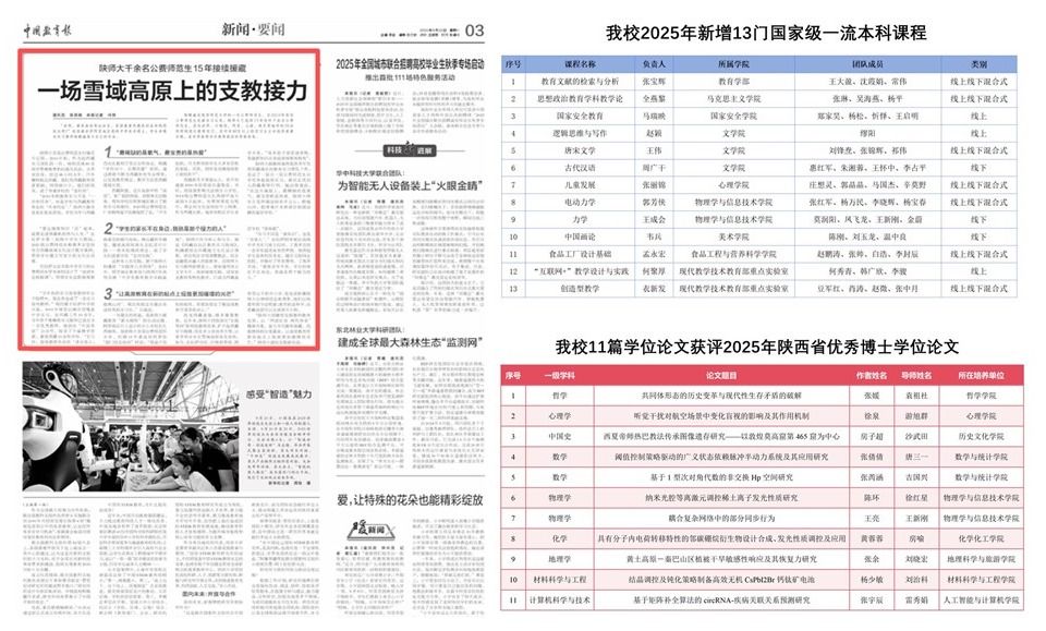 陕西师范大学2025年十大新闻今日正式发布。让我们共同回望这一年师大人守初心、担使命、勇作为、攀高峰的坚实足迹,凝聚奋进力量,再启崭新征程。